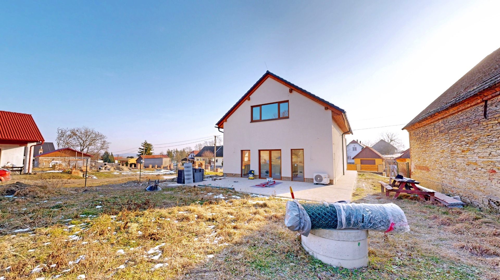 Bez starostí: Odpad je řešen nadstandardním septikem (12 m³), dešťová voda je sbírána do retenční nádrže pro vaši zahradu a dům je připojen k obecnímu vodovodu.